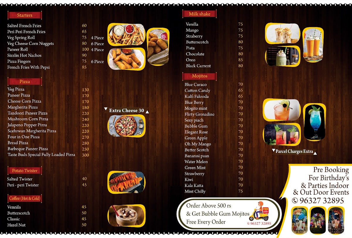 - Desserts: Satisfy your sweet tooth with options like Pista and Mango Cups, or indulge in the rich layers of the Taste Buds Special Family Bucket.